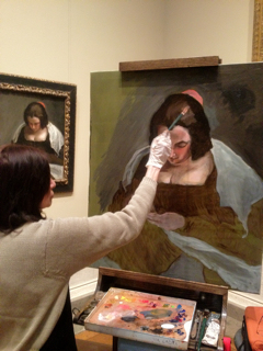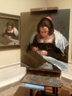 I’m back in the Impressionist gallery, #85, at the National Gallery of Art, Washington, DC. I spent a couple of months in the American Gallery painting “Right and Left” after Winslow Homer. I love the excitement and activity of the Impressionist Galleries. It’s a bit noisier than other galleries but even some of the guards like it best for the same reasons I do.